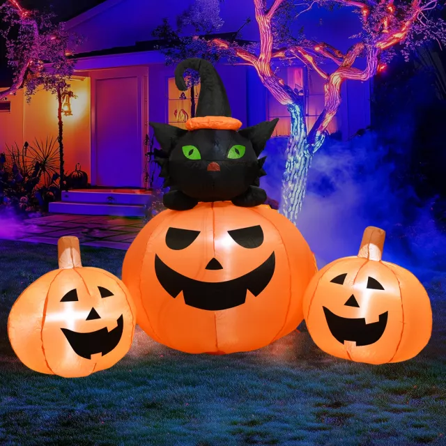 Halloween Inflatable Cat Pumpkin Outdoor Decoration with LED Lights