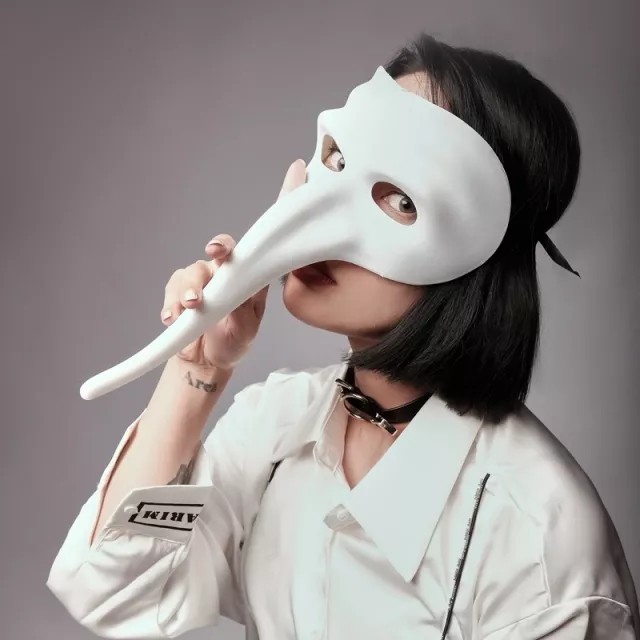 This stunning full-face cover features a unique long-nose design that extends the line of the face, creating a mysterious and artistic silhouette. The intricate swallowtail butterfly pattern is both elegant and edgy, making it the perfect prop for singers, dancers, and performers. It’s more than just a mask; it’s a piece of wearable art that empowers you to express your most creative self.