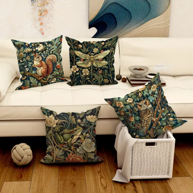 Transform your living space with this delightful decorative pillowcase featuring a playful woodland design. Showcasing a curious squirrel, graceful dragonfly, charming frog, and wise owl, this pillowcase adds warmth and character to any room. Its versatile style makes it perfect for your sofa, armchair, or bed, giving your home a cozy and inviting touch.